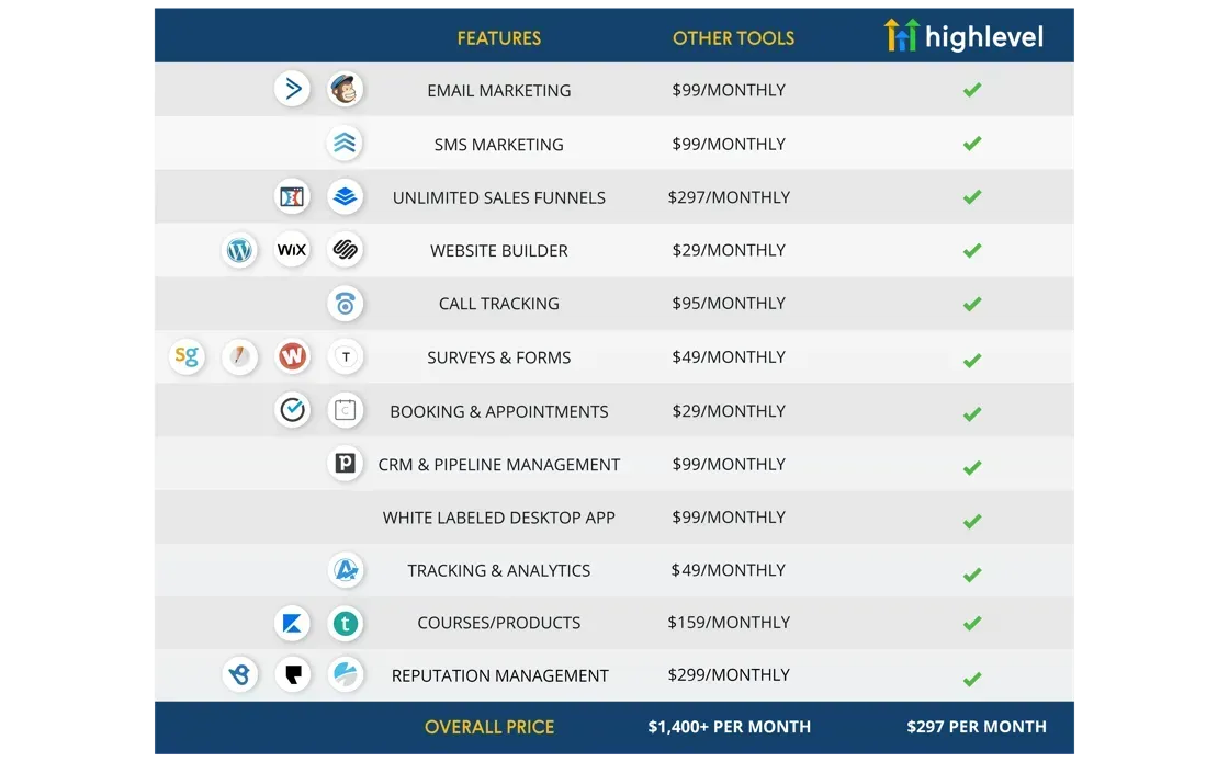 HighLevel Replaces the core functionality (and costs!) of all this software: